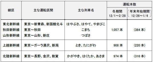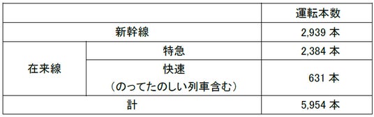 ※東北・秋田・山形新幹線のうち、併結して運転する列車は1本として計上しています。