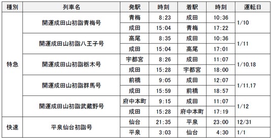 開運成田山初詣青梅・八王子・栃木・群馬・武蔵野号 平泉仙台初詣号