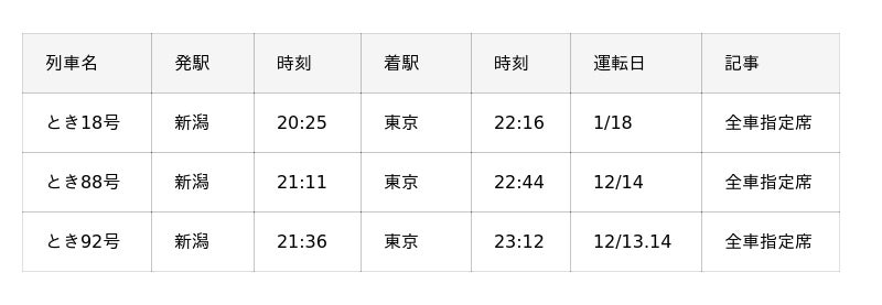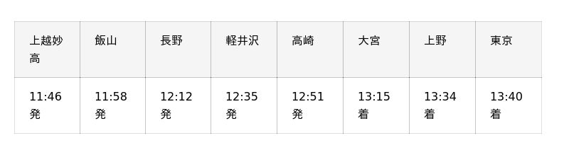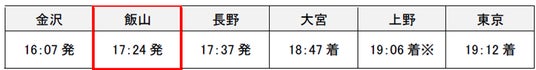 □途中停車駅:飯山・長野・軽井沢・高崎・大宮・上野