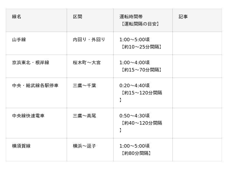 ※終夜運転については、12月5日(金)以降、デジタルJR時刻表及びJR東日本アプリ等の経路検索に反映します。