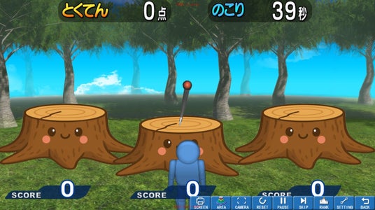 手を上下してマキ割り。高くあげるとスイカになるよ。