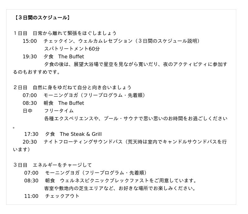 2.1日3組限定 3 days秋冬ウェルネスパッケージ