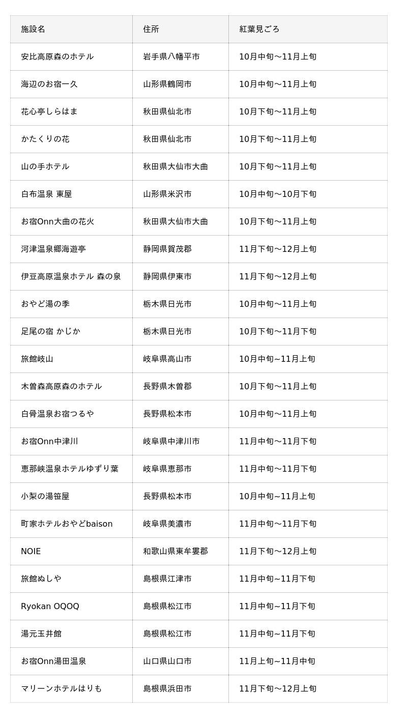 女将塾が運営する全国24施設を対象に「紅葉MAP2025」を公開しました。