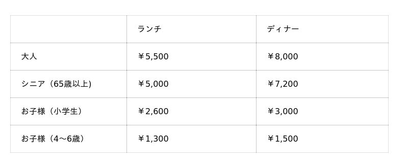 *ご予約は11:30a.m.入店/12:00p.m.入店にて承ります。(120分制)