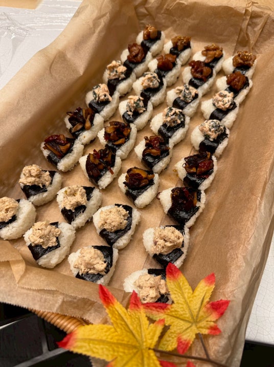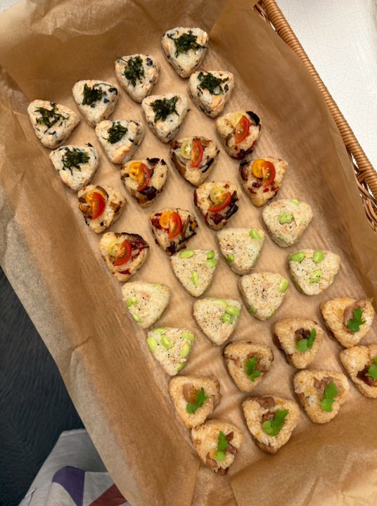 「椎茸トマトおむすび」や「混ぜご飯おむすび」など、現地では珍しいメニューを考案しました。
