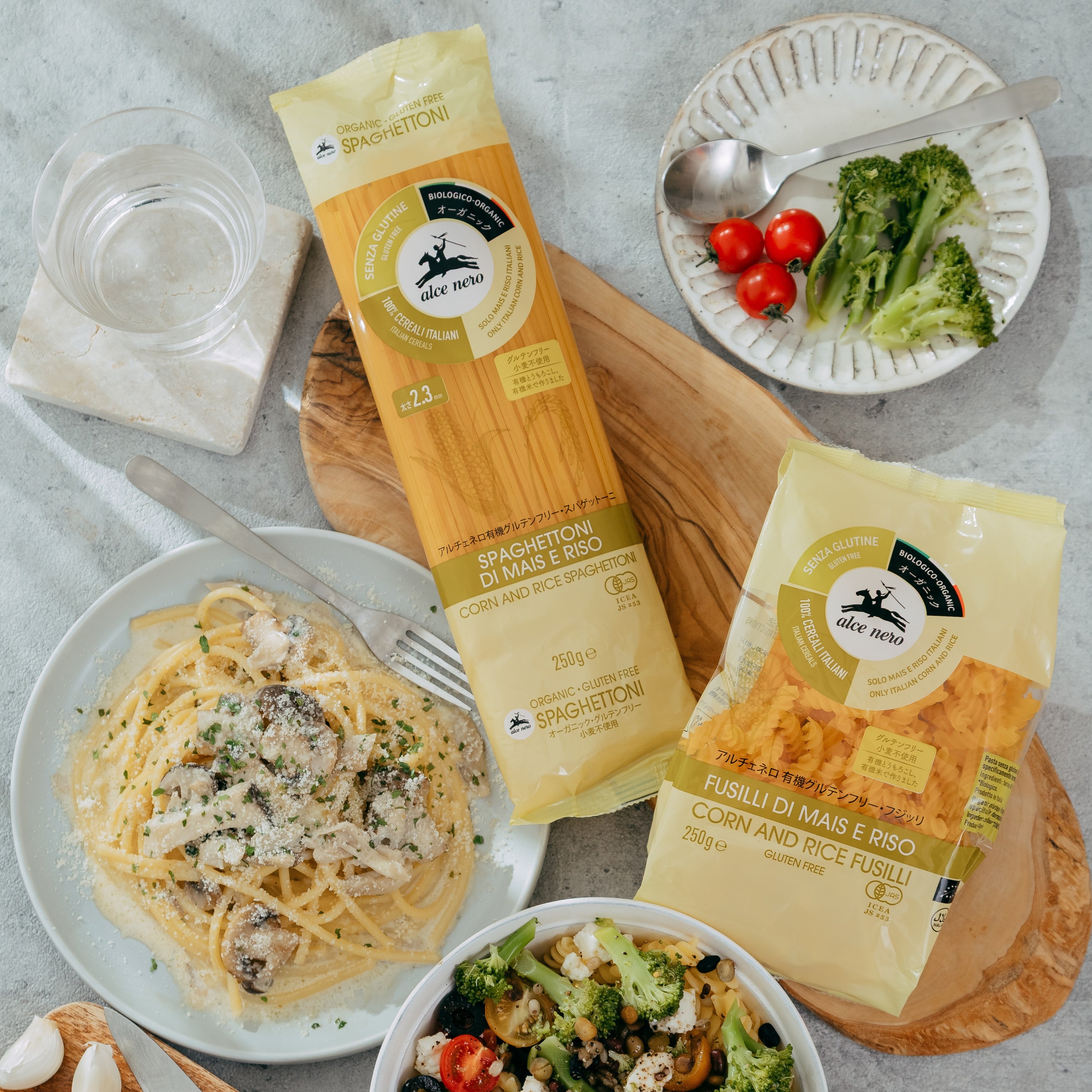 アルチェネロのグルテンフリーパスタアルチェネロのグルテンフリーパスタは、イタリアで有機栽培されたとうもろこしと米のみを原料に作られているので、オーガニックかつ「小麦不使用」。ほんのりと穀物の甘さが感じられて、もちもちとした食感をお楽しみいただけます。