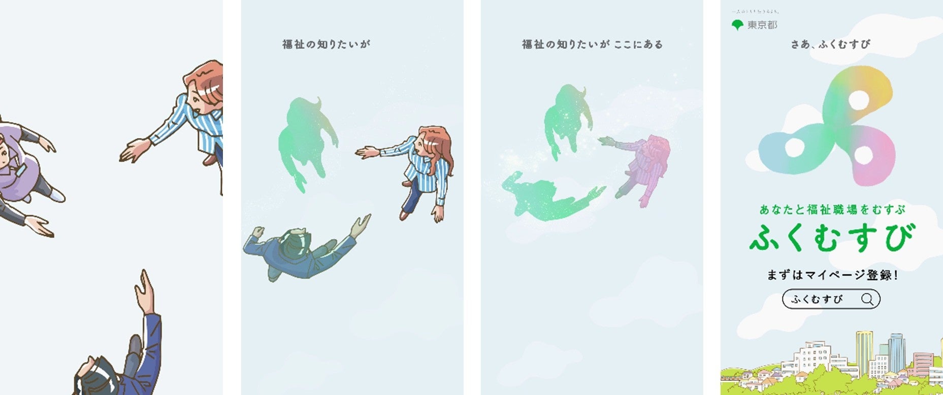 「ふくむすび」とは、あなたに必要な東京都内の福祉職場に関する情報が見つかるサイトです。