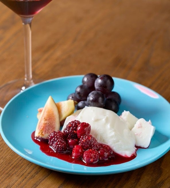 イタリアの北部ピエモンテ州発祥のスイーツ、パンナコッタと秋のフルーツをあわせました。生クリームを100%使ったコク深い味わいと、ベリーソースの甘酸っぱさの組み合わせがたまりません。