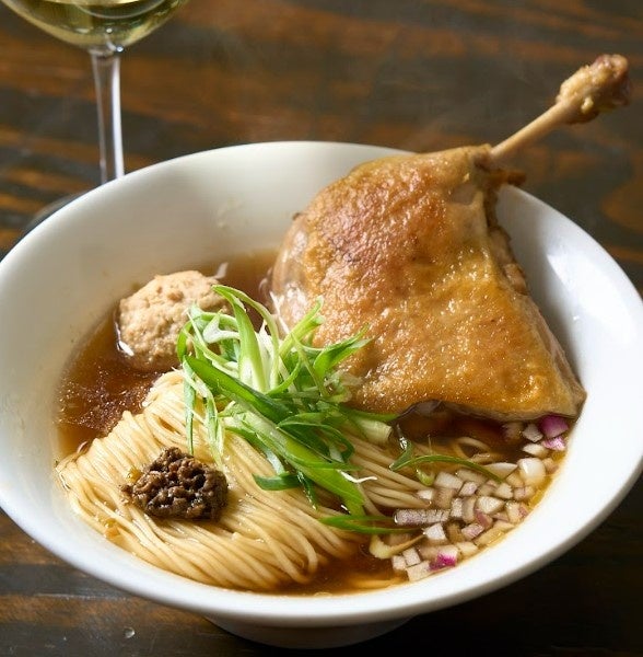 大阪・北新地「Bisou(ヴィス)×鴨だしラーメン一汁一麺」紀州本醸造醬油とトリュフの鴨だしラーメン合鴨のコンフィ添え
