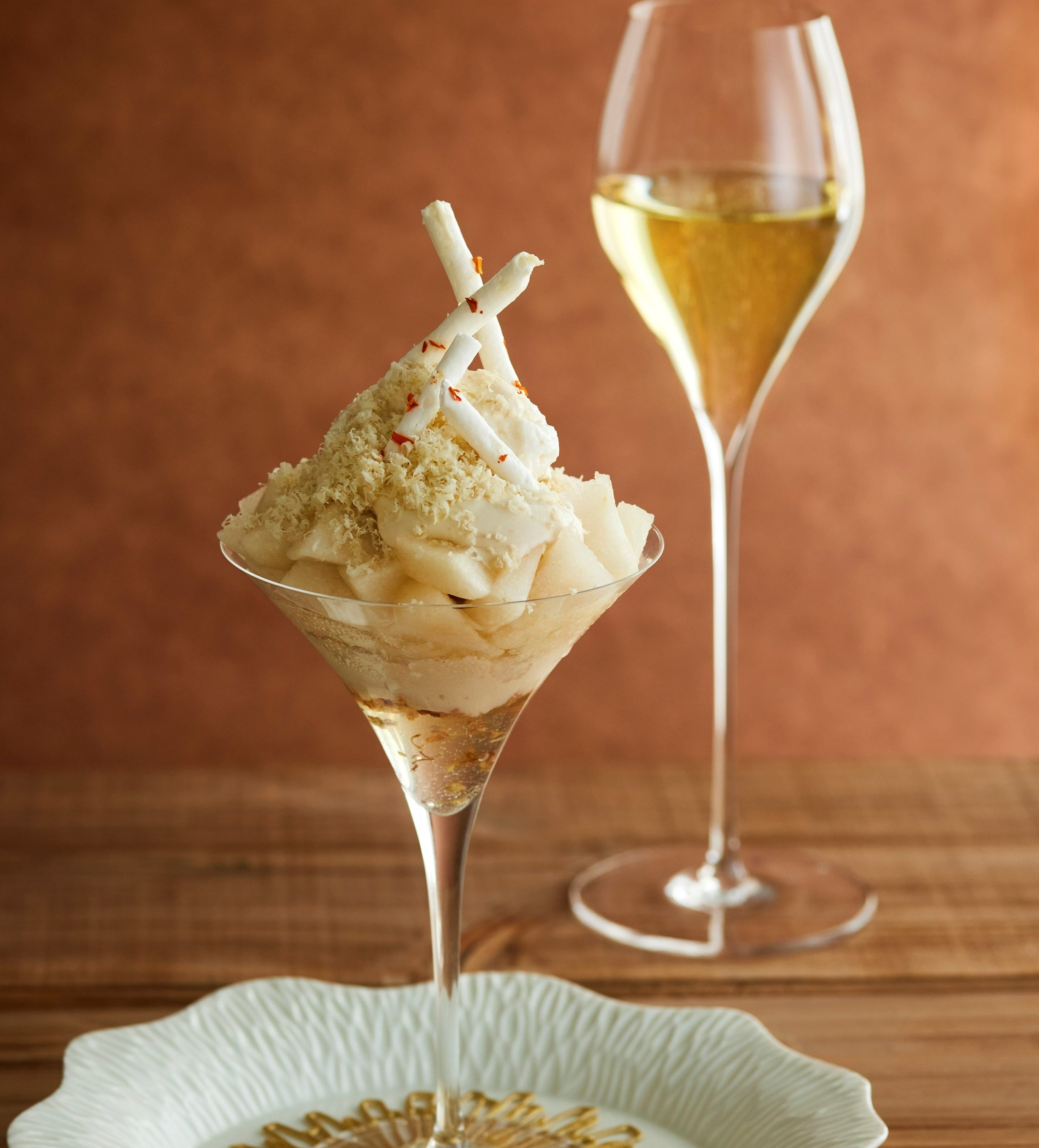 果実味爽やかな王林と、ほっくり甘いさつまいもの出会い。フロマージュブランのソルベも添えて。