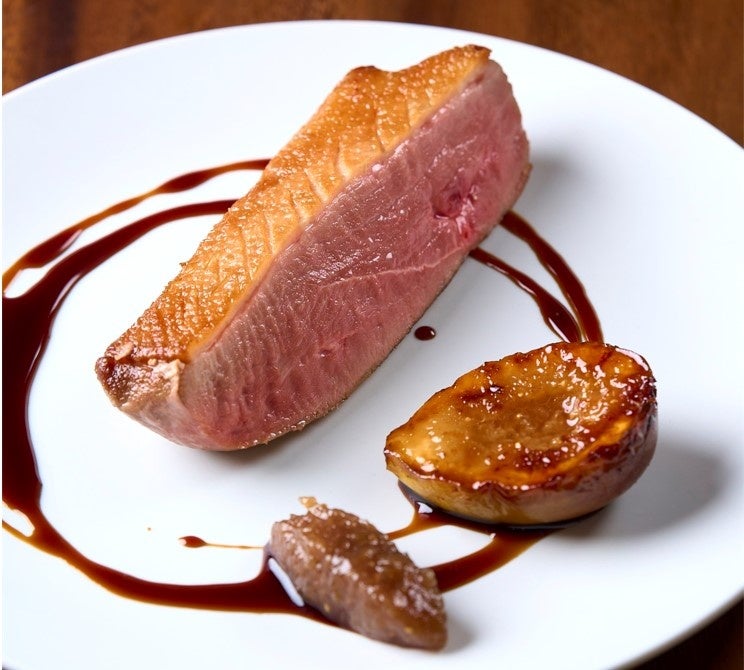 鴨胸肉の旨みと秋の味覚・いちじくのやさしい甘み、赤ワインソースのコクが好相性。