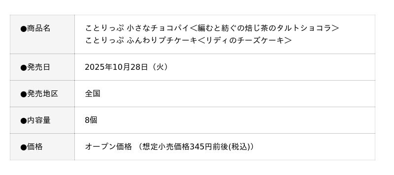 新潟「ことりっぷ 小さなチョコパイ<編むと紡ぐの焙じ茶のタルトショコラ>」、えひめ南予「ことりっぷ ふんわりプチケーキ<リディのチーズケーキ>」2025年10月28日(火)より全国で発売
