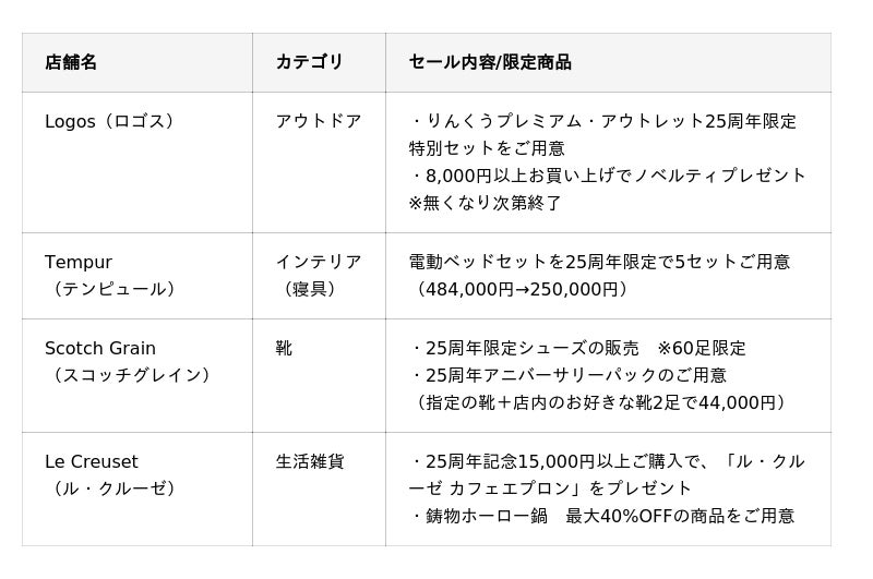 ●WEBサイト:https://www.premiumoutlets.co.jp/rinku/sp/25th/sale/