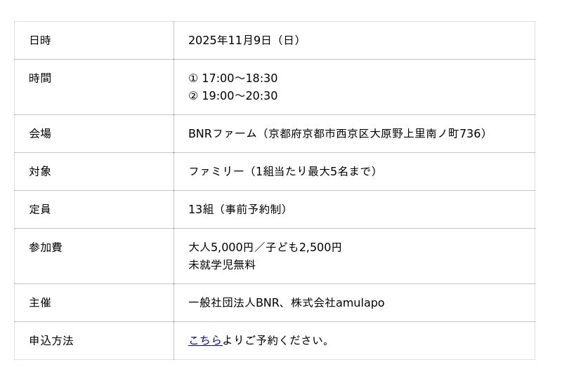 BNRファームは、京都・大原野を拠点に「夜の農場体験(ナイトファーム)」を通じて、