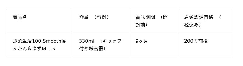 ~日本の風物詩を取り入れたレシピでほっこりおいしいエールを~ 冬限定「野菜生活100 Smoothieみかん&ゆずMix」新発売