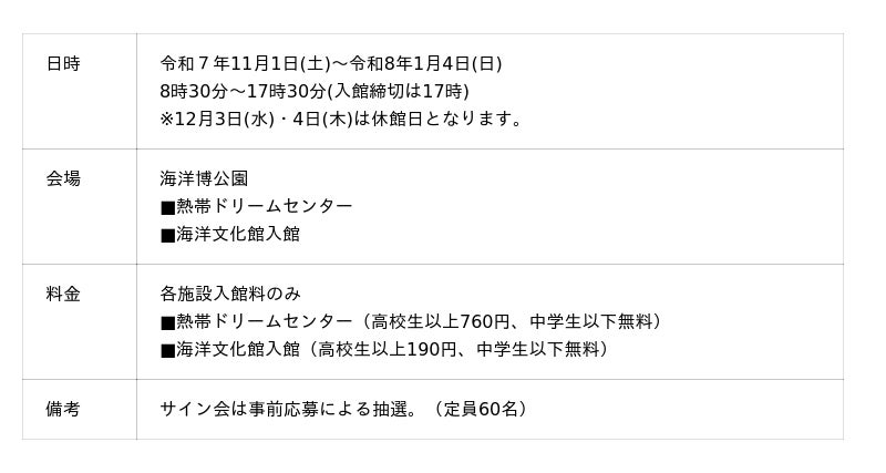 イベントの詳細、イラスト付きサイン会への応募方法などは海洋博公園HPをご確認ください。