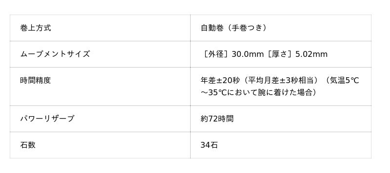 スプリングドライブはぜんまいによる動力で作った微弱な電流で、水晶振動子とICを介して精度をコントロールしています。高精度化の実現のためには、通常ならば、より多くの電力を必要としますが、エネルギーロスを抑える精巧な歯車や回路の開発により、年差基準の高精度を達成しました。さらに、ムーブメント構造を見直すことで小型化も同時に実現しています。