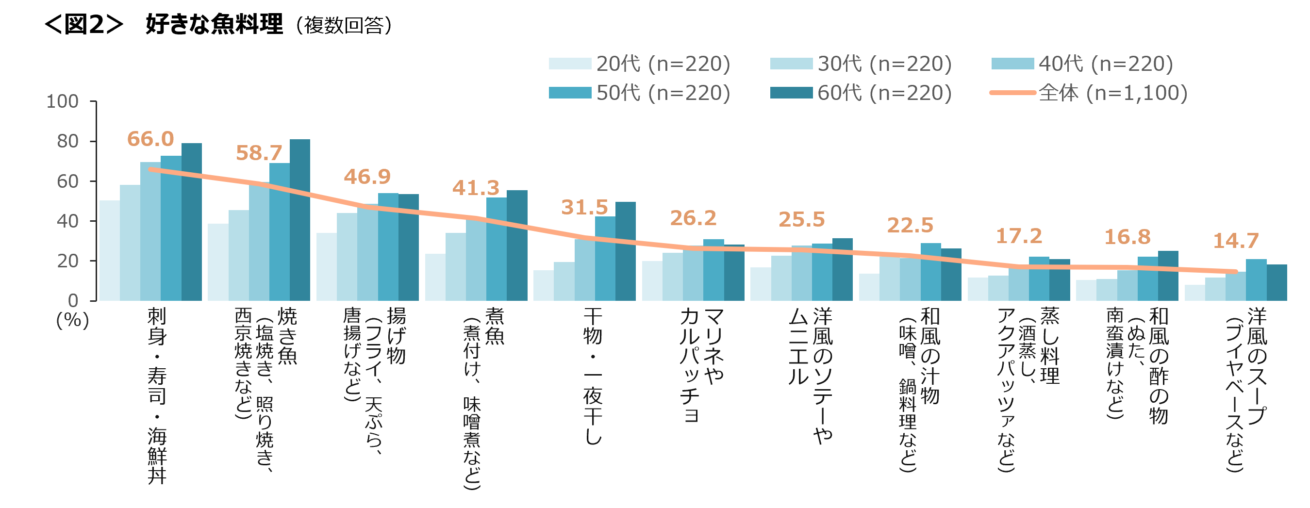 年代が上がるほど、和食系の魚料理の支持率は高い傾向。<図2>