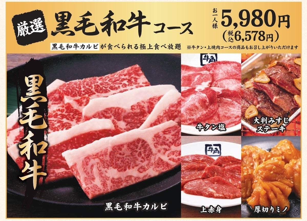 対象:牛角コース / 牛タン・上焼肉コース / 黒毛和牛コース