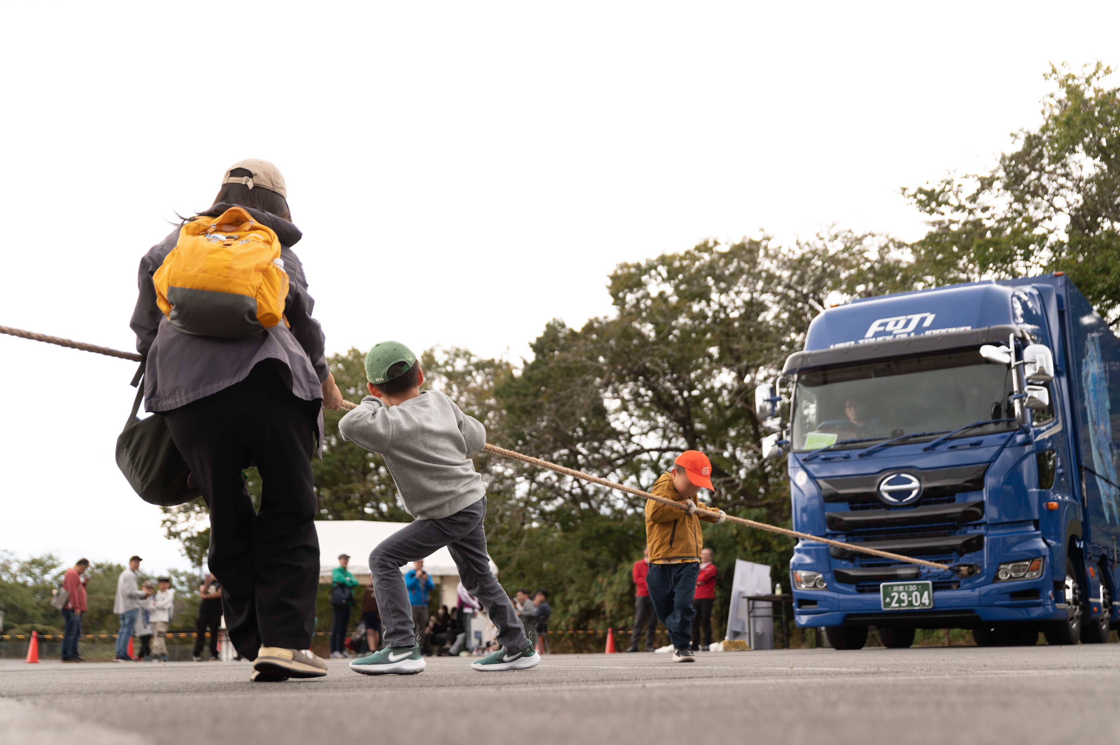 トラックの展示や関連製品の即売会、試乗会、乗車体験、パレードラン、トラックと綱引きなどを実施