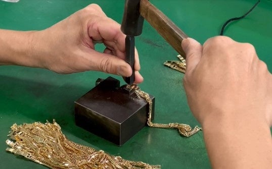 貴金属製品品位証明の打刻作業