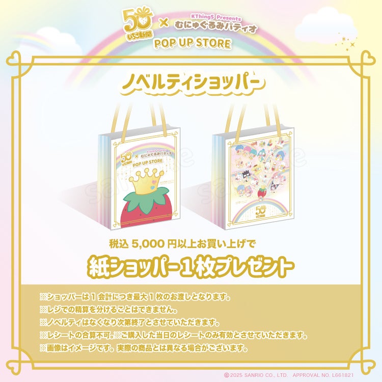 ぜひこの機会に「いちご新聞50周年×むにゅぐるみパティオ POP UP STORE」にご来店ください。