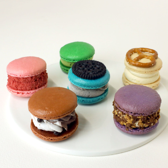 パステルカラーやビビッドな色合いのマカロン生地に、溢れんばかりのクリーム、そしてデコレーションされた姿は、思わず写真に撮りたくなる可愛らしさです。
