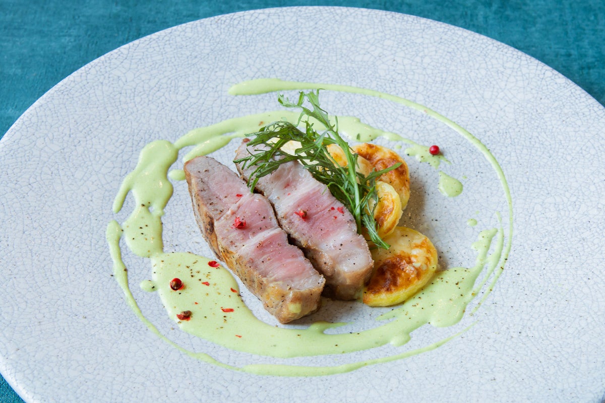 牛リブアイのローストビーフ ジャガイモグラタンと赤ワインソース