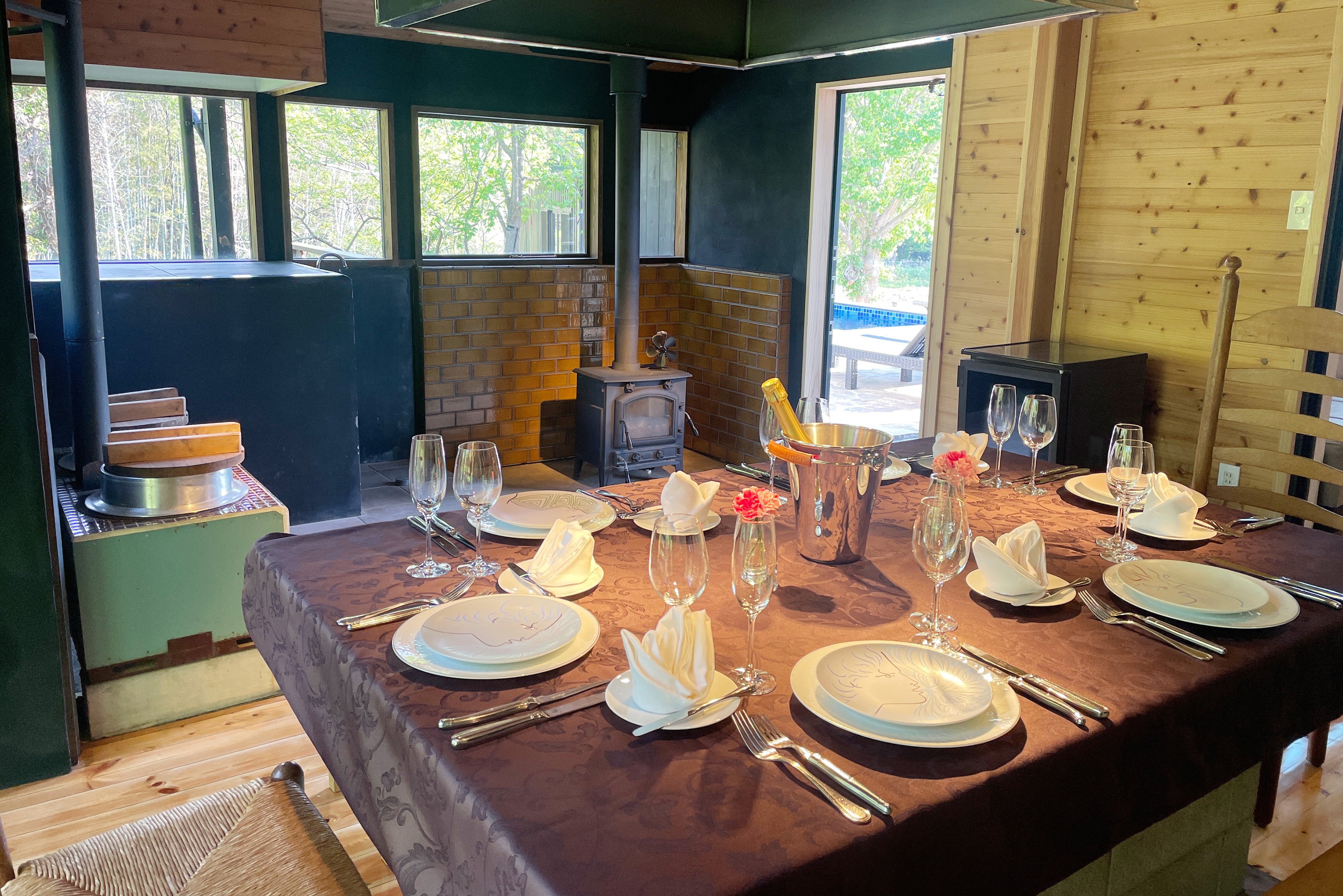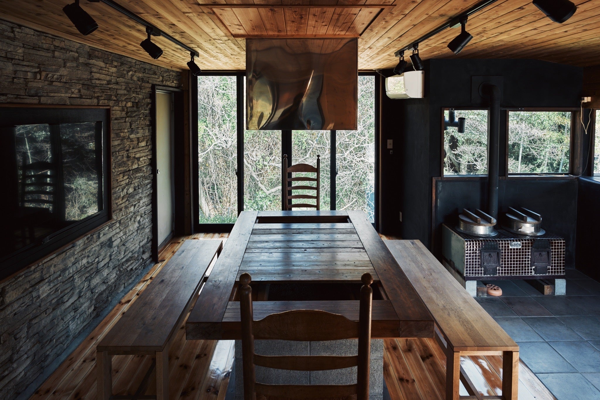 ・ 薪暖炉、囲炉裏、薪釜戸付きダイニング