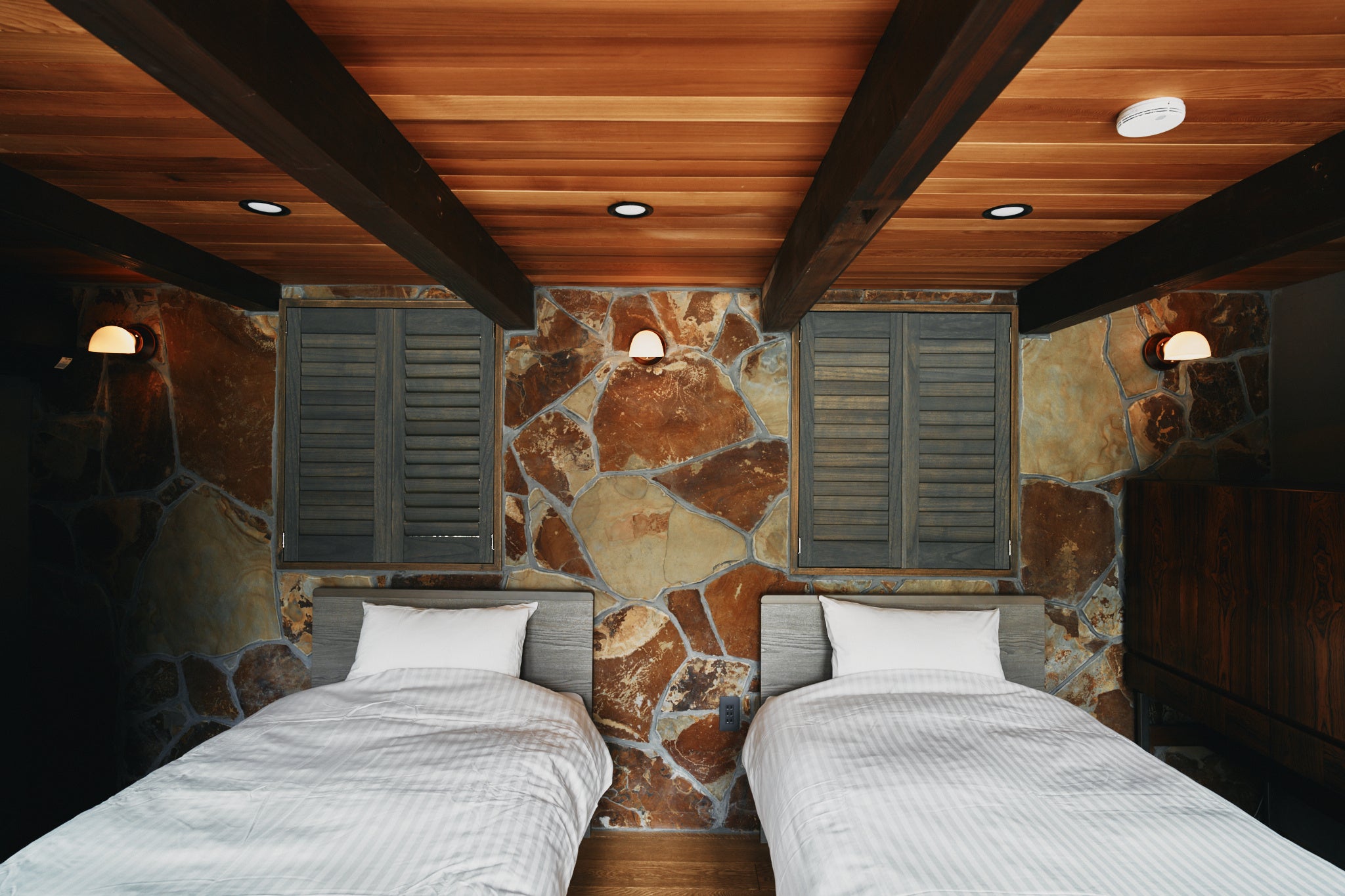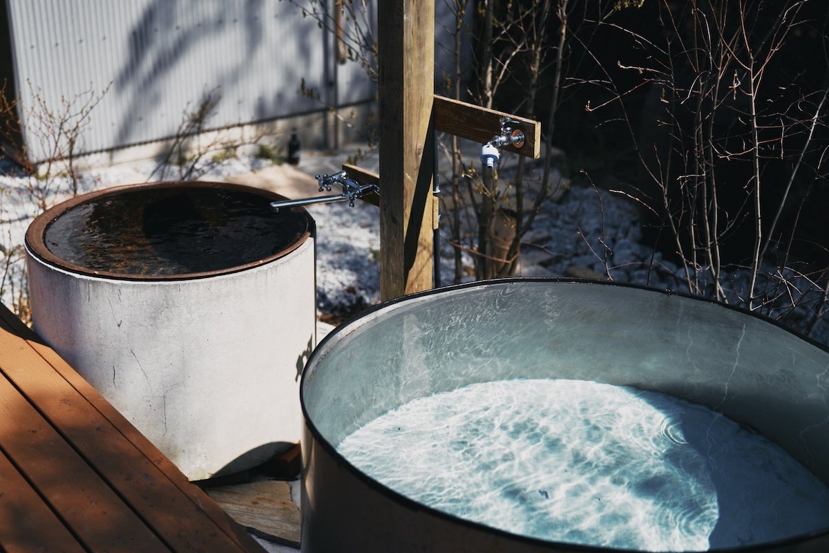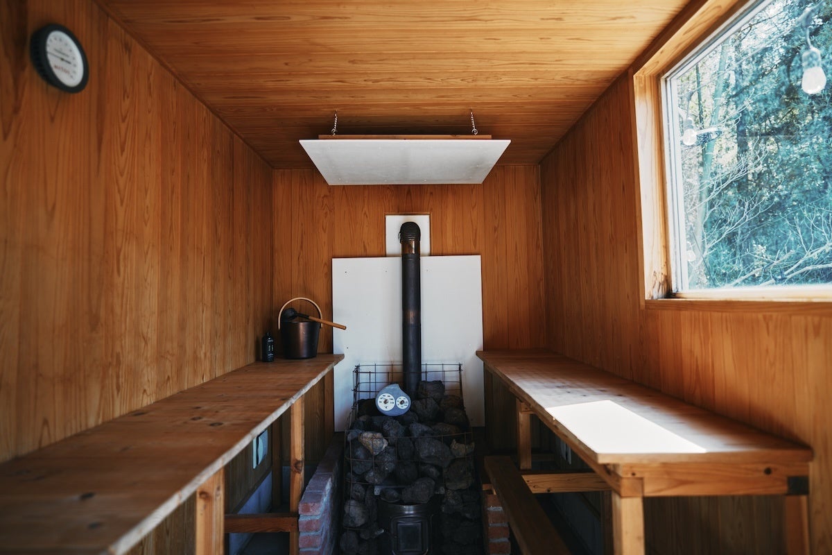 さらに、敷地内には九州産の溶岩石を用いた薪式サウナがあり、地下から汲み上げた天然水でロウリュを行うことができます。硫黄やミネラルを多く含む水蒸気で体を温めた後は、水風呂や温水プールで火照った体をクールダウン。お肌に潤いを与える天然水のおかげで美容効果も期待できます。