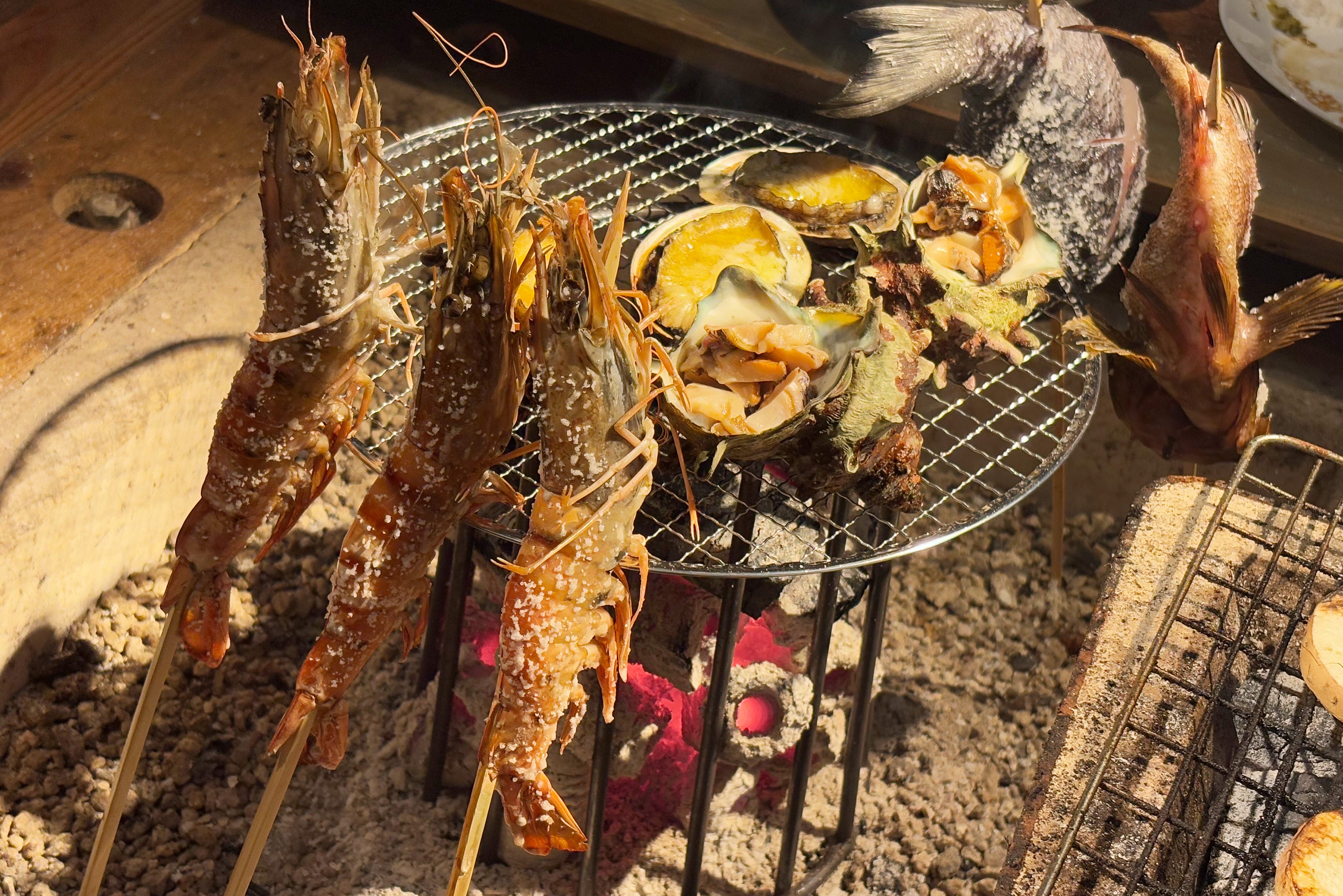 囲炉裏で焼く牡蠣はまたとない美味しさ