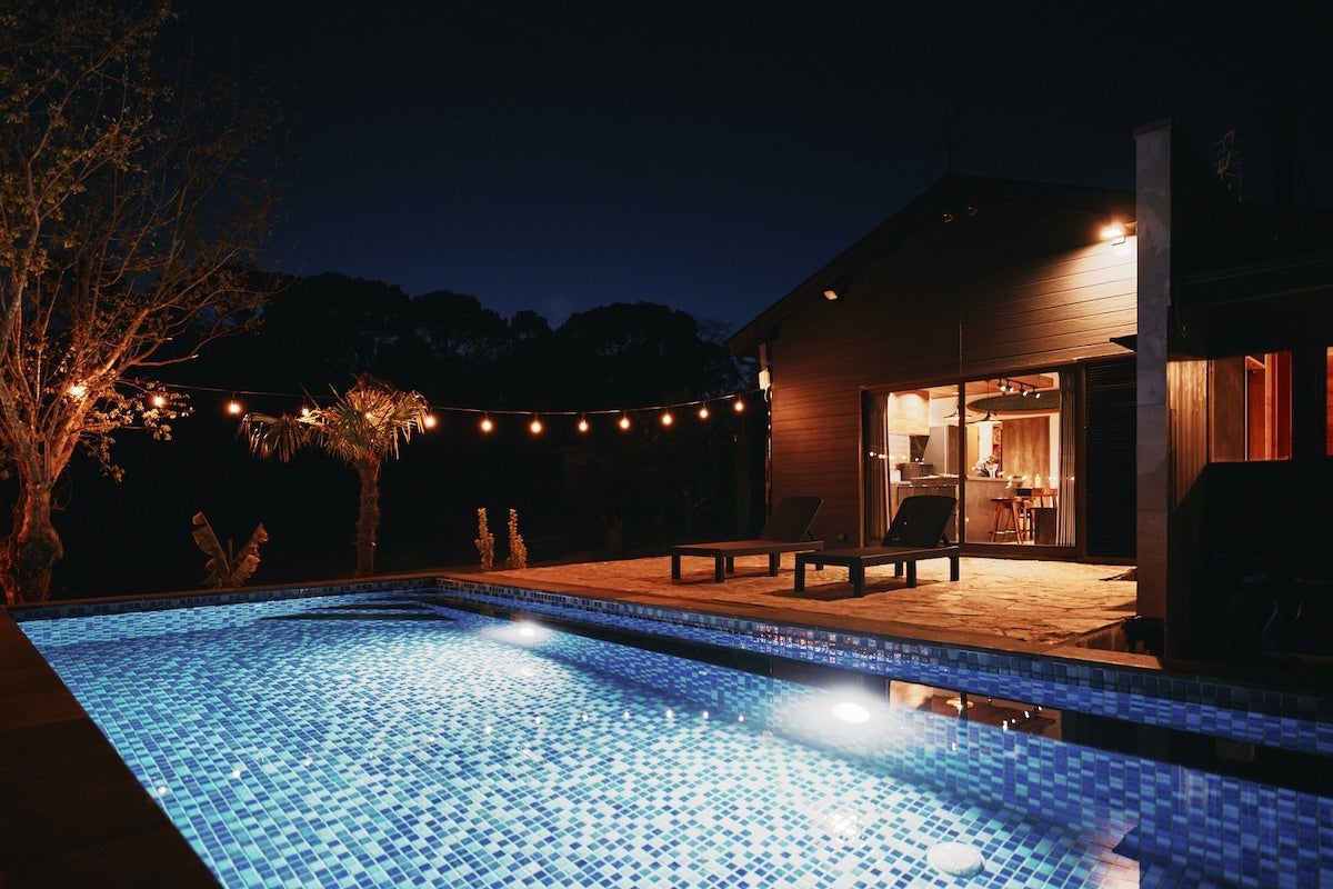 2025年5月に開業した福岡県宗像市の宿泊施設「THE NEST 森の灯 MUNAKATA by ritomaru」では、開業以降好評を博しているプライベートプールを、秋から春にかけて楽しめる温水にてご提供開始いたします。また、「カナディアンキャンプ乗馬クラブ九州」とのコラボにより、ご予約の際に乗馬プランもお選びいただけるようになりました。