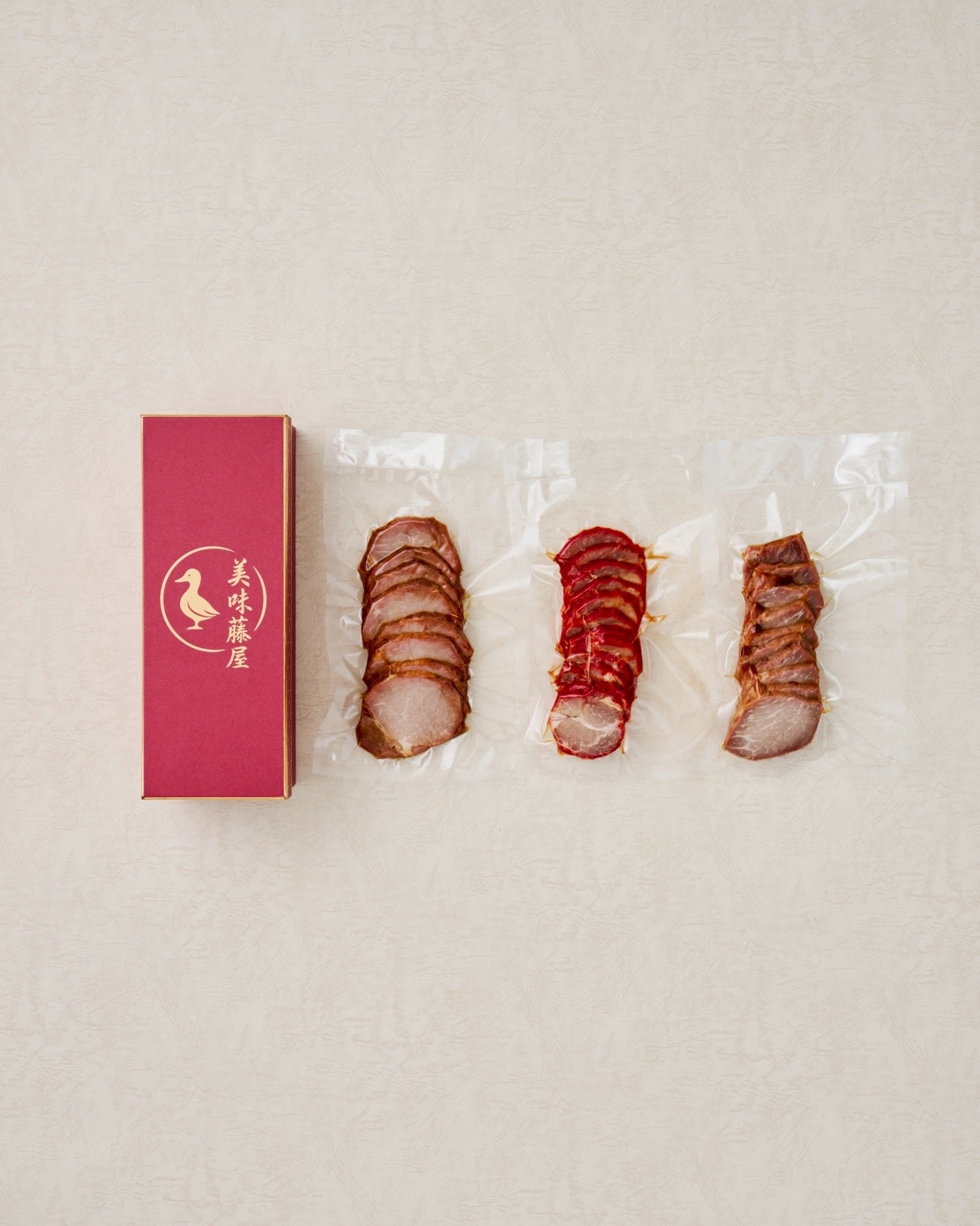 美味藤屋チャーシュー3種美味藤屋自慢のチャーシュー「旨味・蜜味・極醤油」3種の詰め合わせ。