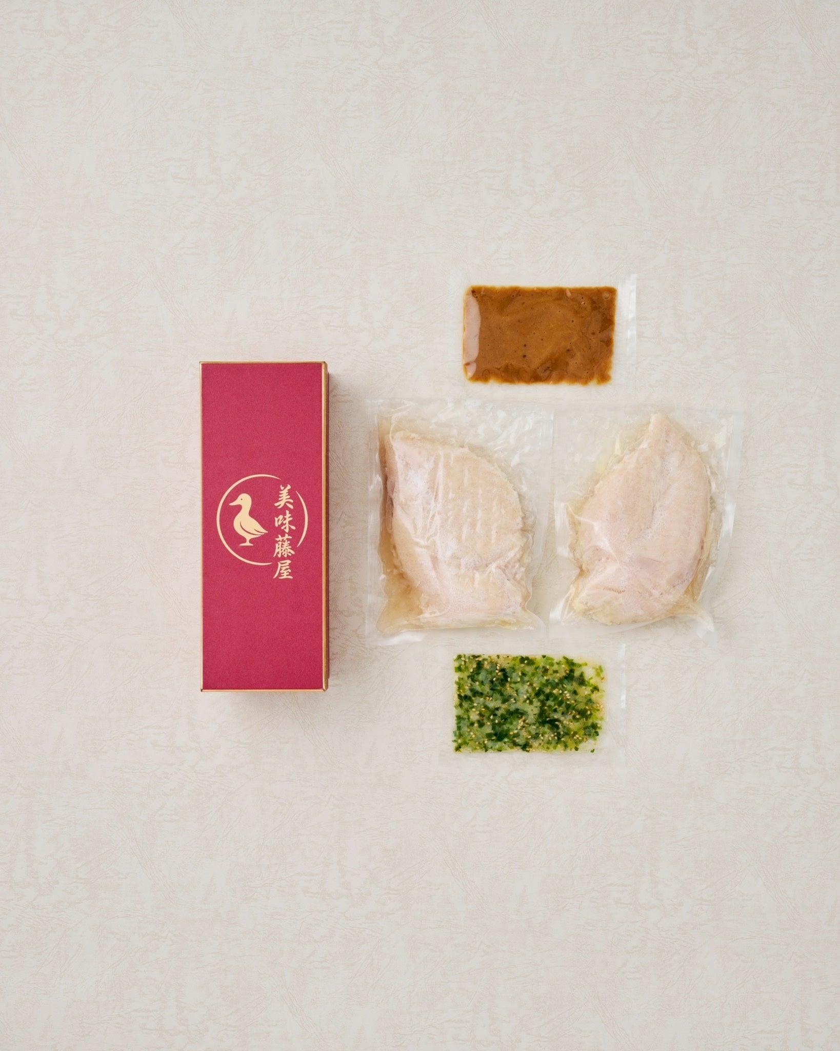 美味藤屋チキンブレスト上質な国産鶏のムネ肉を、美味藤屋秘伝のタレに漬け込んで低温調理。そのまま食べても、サラダやサンドウィッチにも。