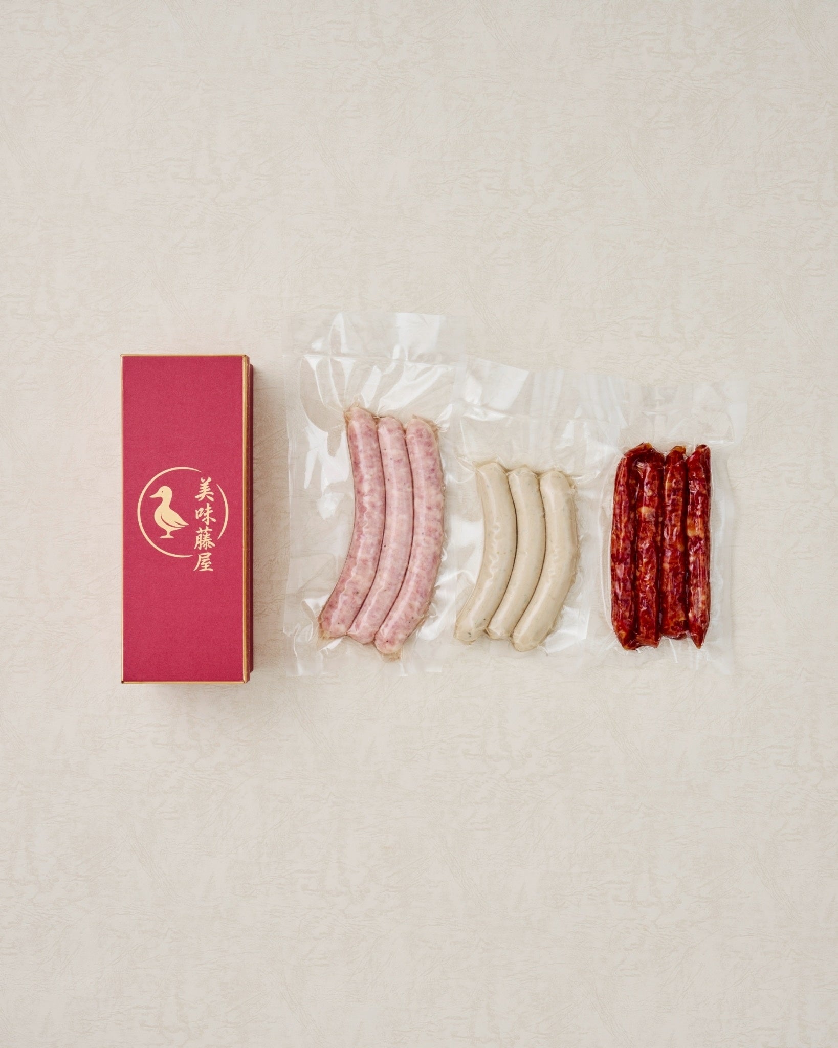 美味藤屋ソーセージ3種美味藤屋のソーセージ「腸詰・トリュフソーセージ・青唐辛子ウィンナー」3種の詰め合わせ。