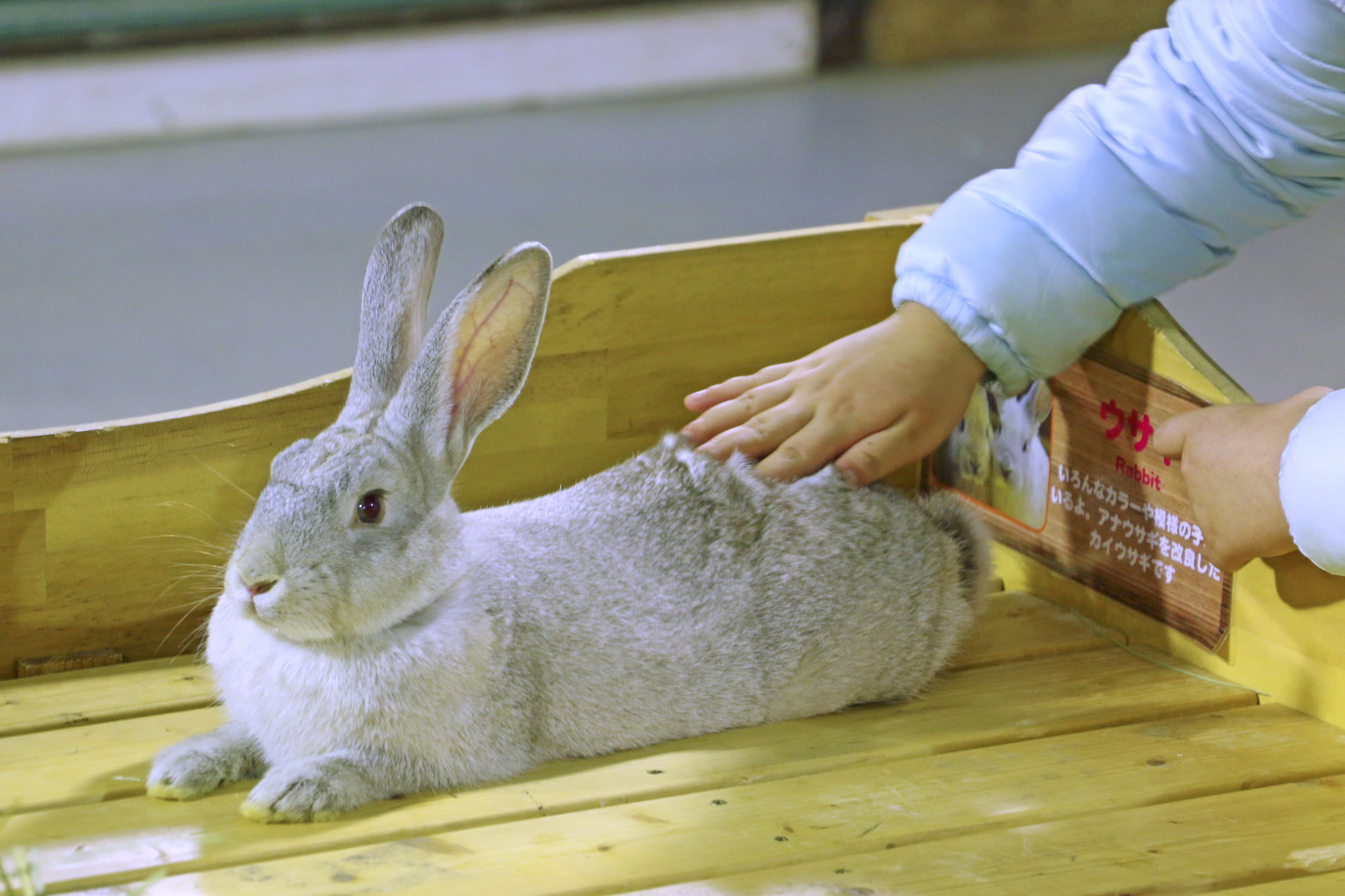 あたたかい室内でうさぎやモルモットとふれあうことが出来る