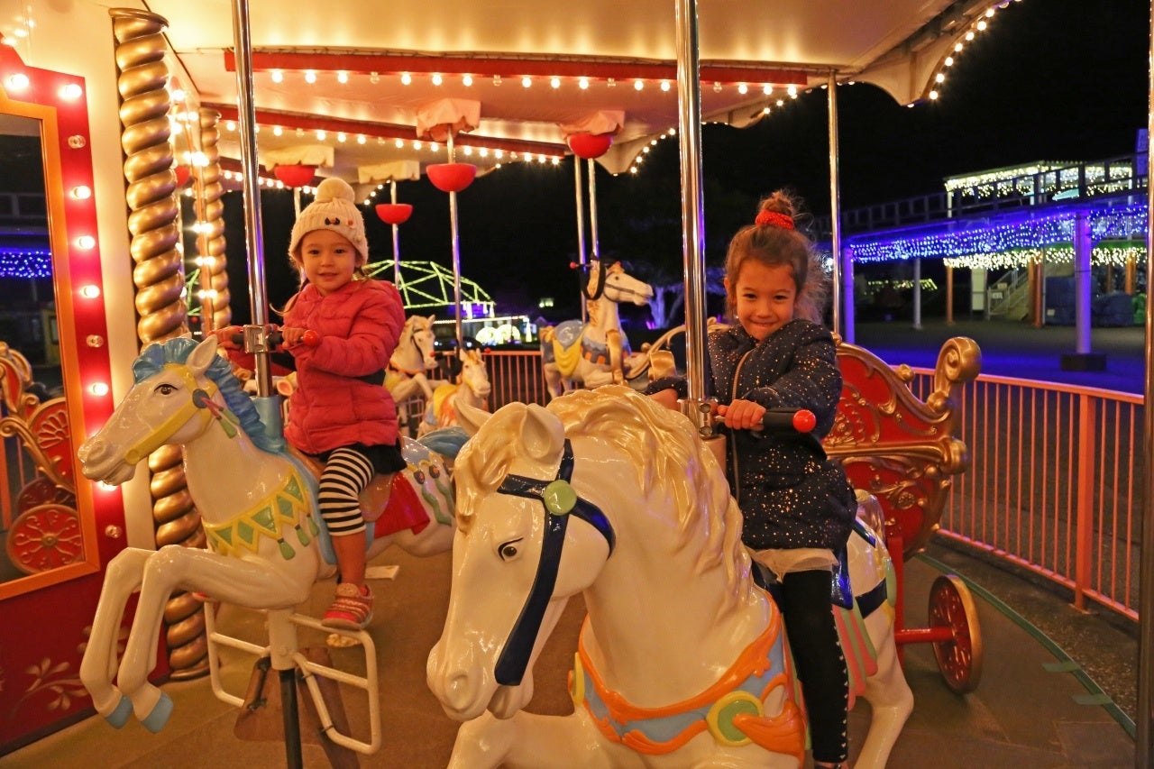 立地の標高含め最高到達点が高さ330mと千葉県一の高さからイルミネーションや東京湾の夜景が一望できる観覧車やキラキラ可愛いメリーゴーランド、夜空をお散歩できるサイクルモノレールなど、子どもから大人まで楽しめるアトラクションが盛りだくさんです。