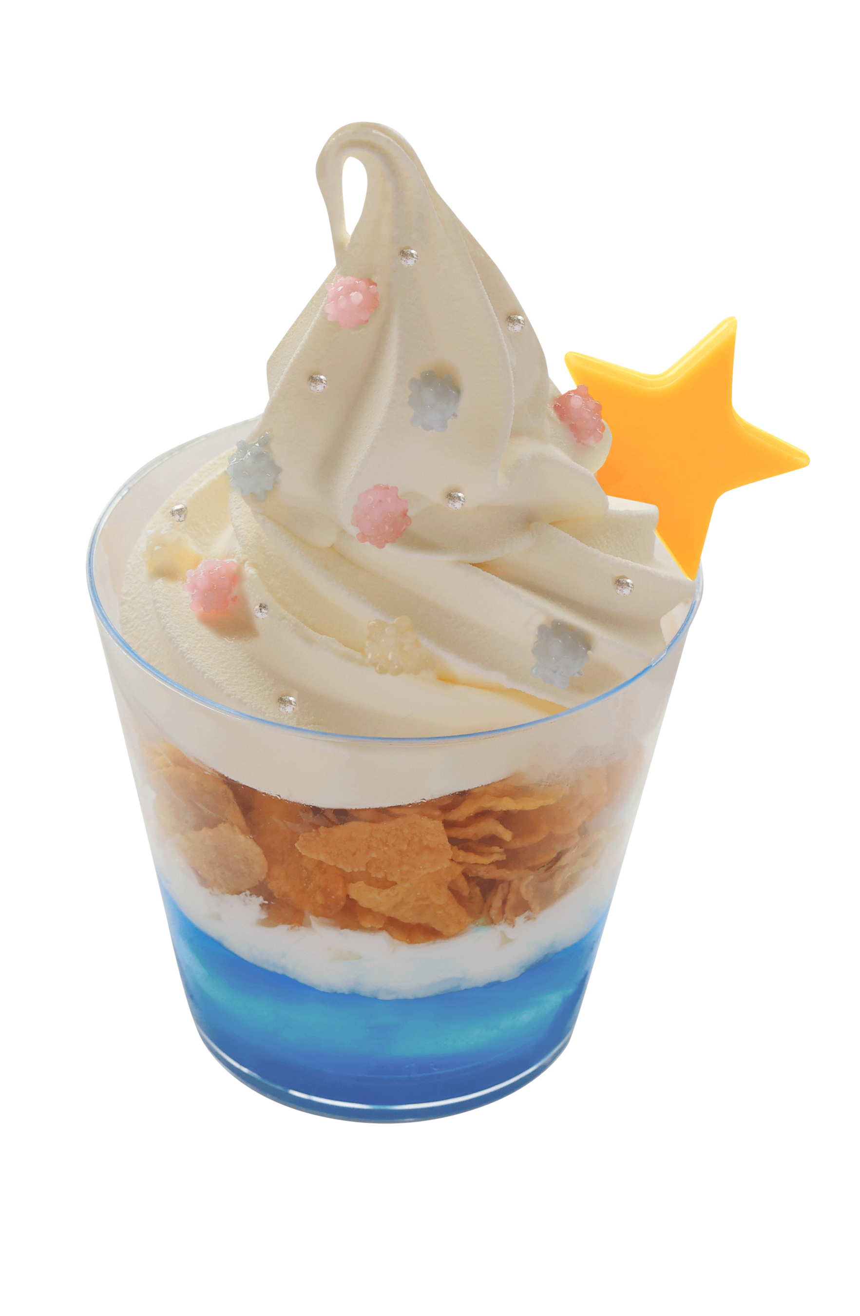 ソーダゼリーのベースにソフトクリームを乗せて、イルミネーションをイメージしてデコレーションした"映えメニュー"!