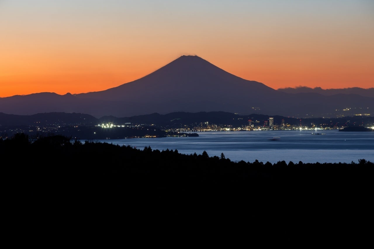 ・日没後~40分間のマジックアワーでは空のグラデーションが美しい景色