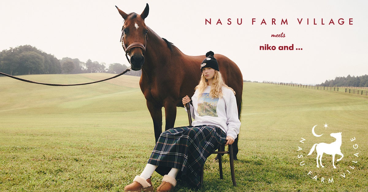 「niko and ...」は、ブランドが掲げる "uni9ue senses"(衣・食・住・遊・知・健・旅・音・LOCAL)の9つの要素を通して、ユニークなモノやコトを提案する企画を展開しています。「NASU FARM VILLAGE」は栃木県大田原市の大自然の中に位置しており、乗馬体験や、馬たちとの触れ合い、レストランでのお食事を楽しめる観光牧場です。<自然と動物と人が永く持続可能に共生していける未来へのインスピレーションとなるように>という理念や保護馬のセカンドライフを提供する活動内容に共感し、初のコラボレーションにいたりました。