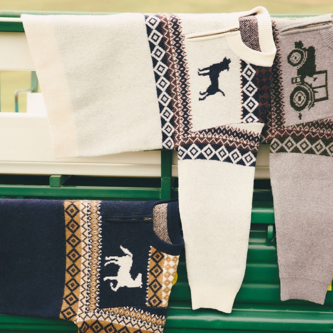 本コラボレーションでは、ウィメンズアパレルと服飾雑貨をラインアップしており、実際に「NASU FARM VILLAGE」で撮影された写真を使用したフォトスウェットやという人気のロゴをあしらった中綿入りジャケット、象徴的なトラクターや動物をジャガード編みで表現したニットプルオーバーと、アパレルアイテムに連動したデザインのニット帽など「NASU FARM VILLAGE」の世界観を表現した特別なコレクションに仕上がりました。