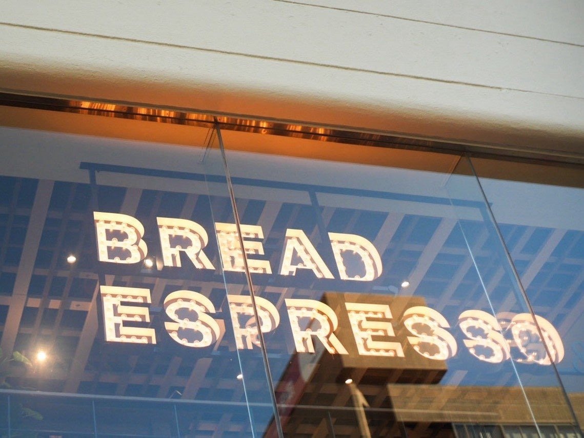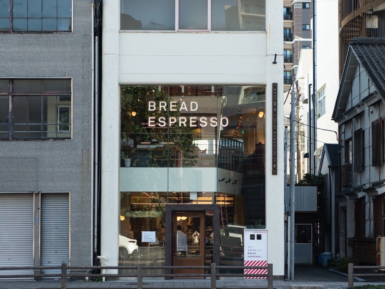「パンとエスプレッソと 土佐喫茶」は、1階に焼きたてパンが並ぶベーカリー、2階はガラス張りのカフェスペースという2フロア構成。