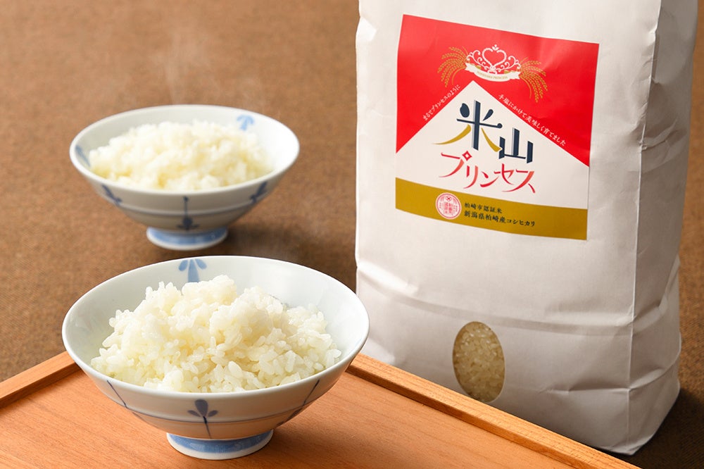 おいしく安全な米づくりを目指し、柏崎市が定めた厳しい基準(品質・食味・栽培方法)をクリアした認証米、「米山プリンセス」。プリンセスのように手塩にかけて育てた極上の味わい。