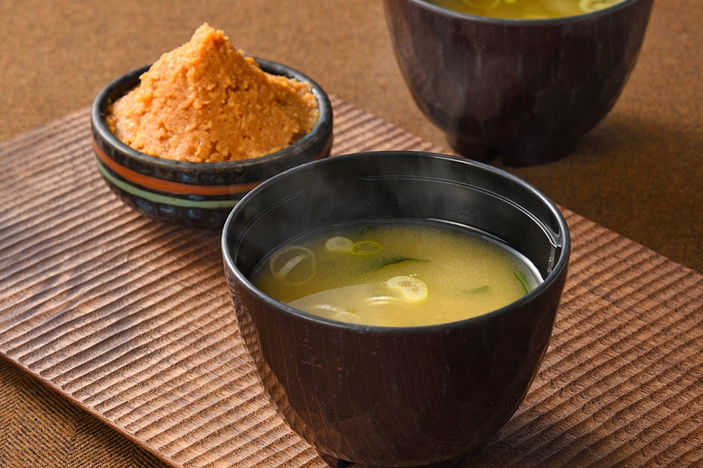 創業1831年。旨味とコク、芳醇な香りが特徴の味噌を使用した「越後みそ西合わせ味噌のお味噌汁」「帛⼄女とやわ肌ねぎの⽩味噌グラタン」