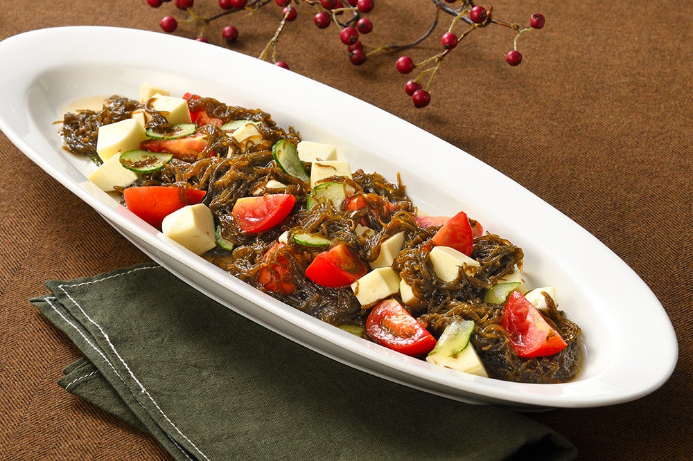 柏崎産岩もずくのカプレーゼ バルサミコ風味