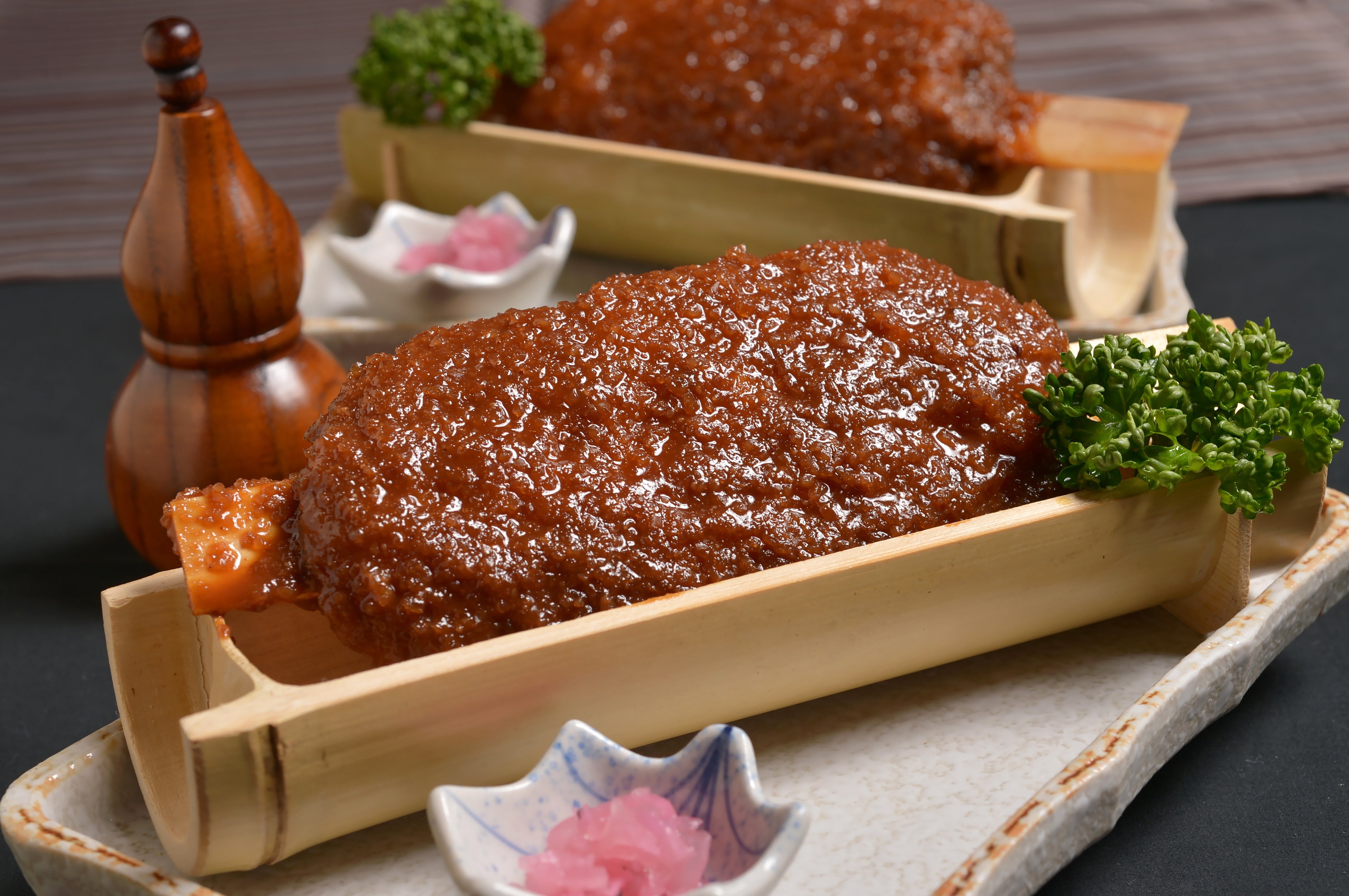 半潰しにした美濃ハツシモ一等米に可児市特産の里芋を蒸して練り込んだ五平餅を揚げ、クルミだれを絡めています。揚げ五平餅はオリジナルの味覚!