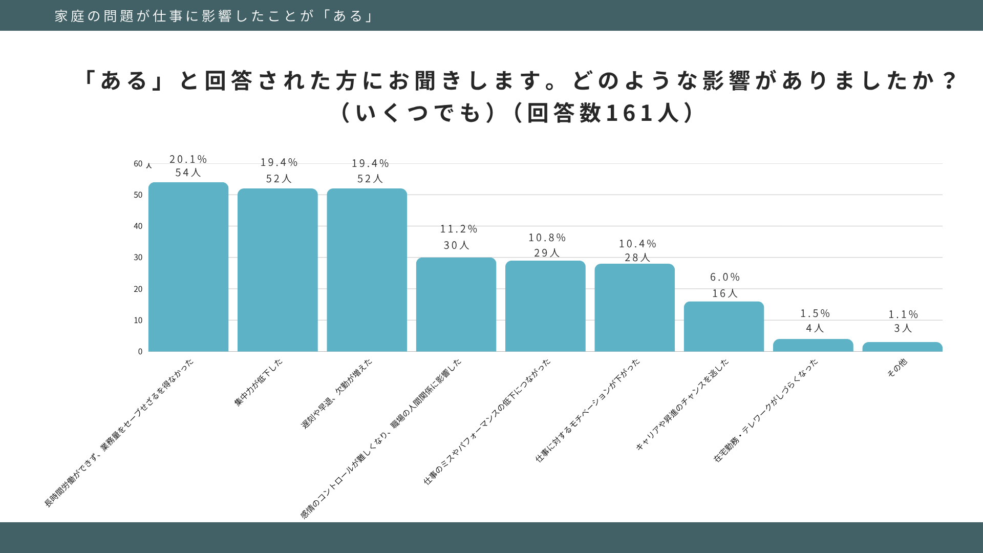 実際、家庭の問題が仕事に影響したと答えた人は66.5%。