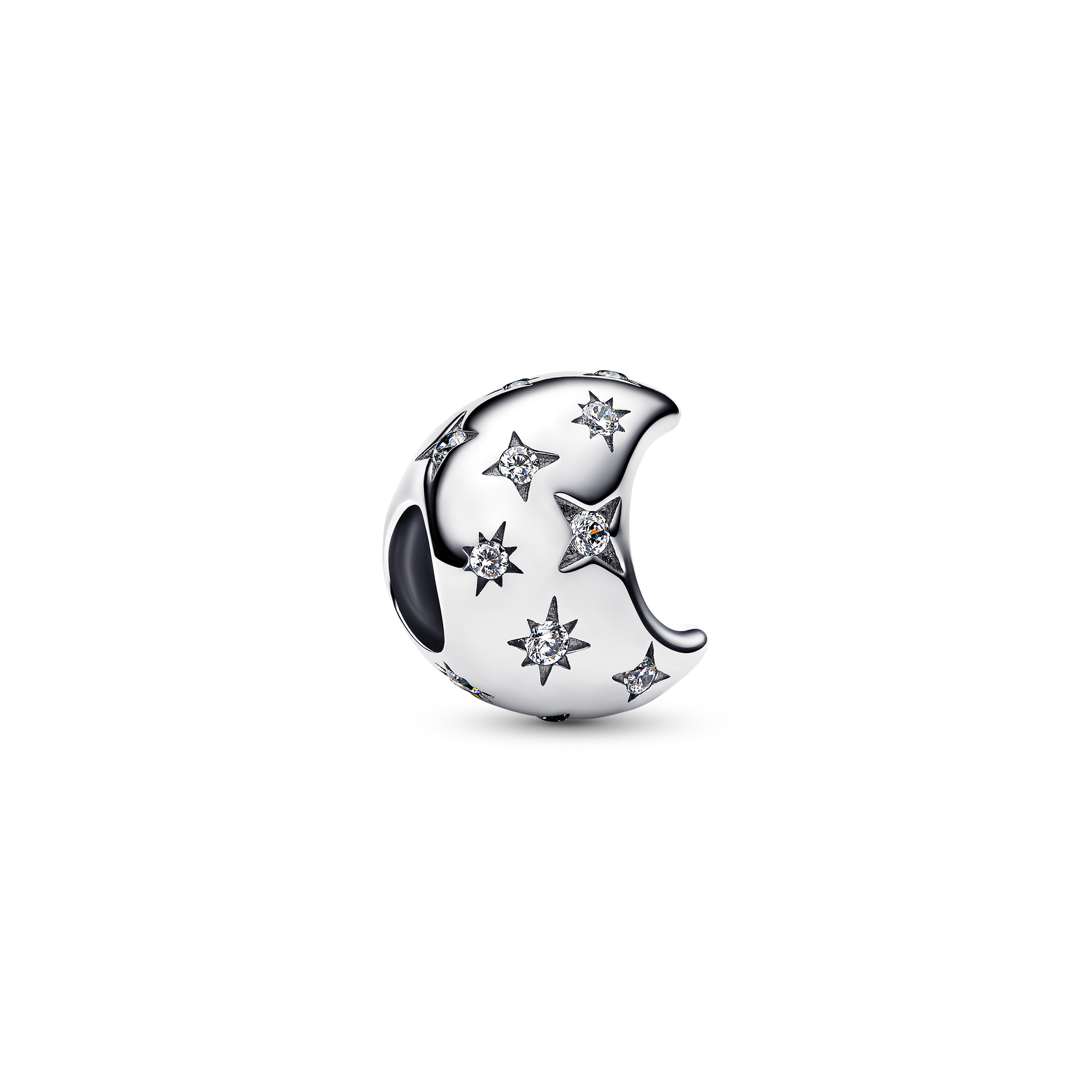 三日月を模したスターリングシルバー製のチャームには、星形のストーンが埋め込まれています。裏面には「THE SKY IS THE LIMIT」と刻印されており、大きな夢を持ち、限界を超えて挑戦することを思い出させてくれます。