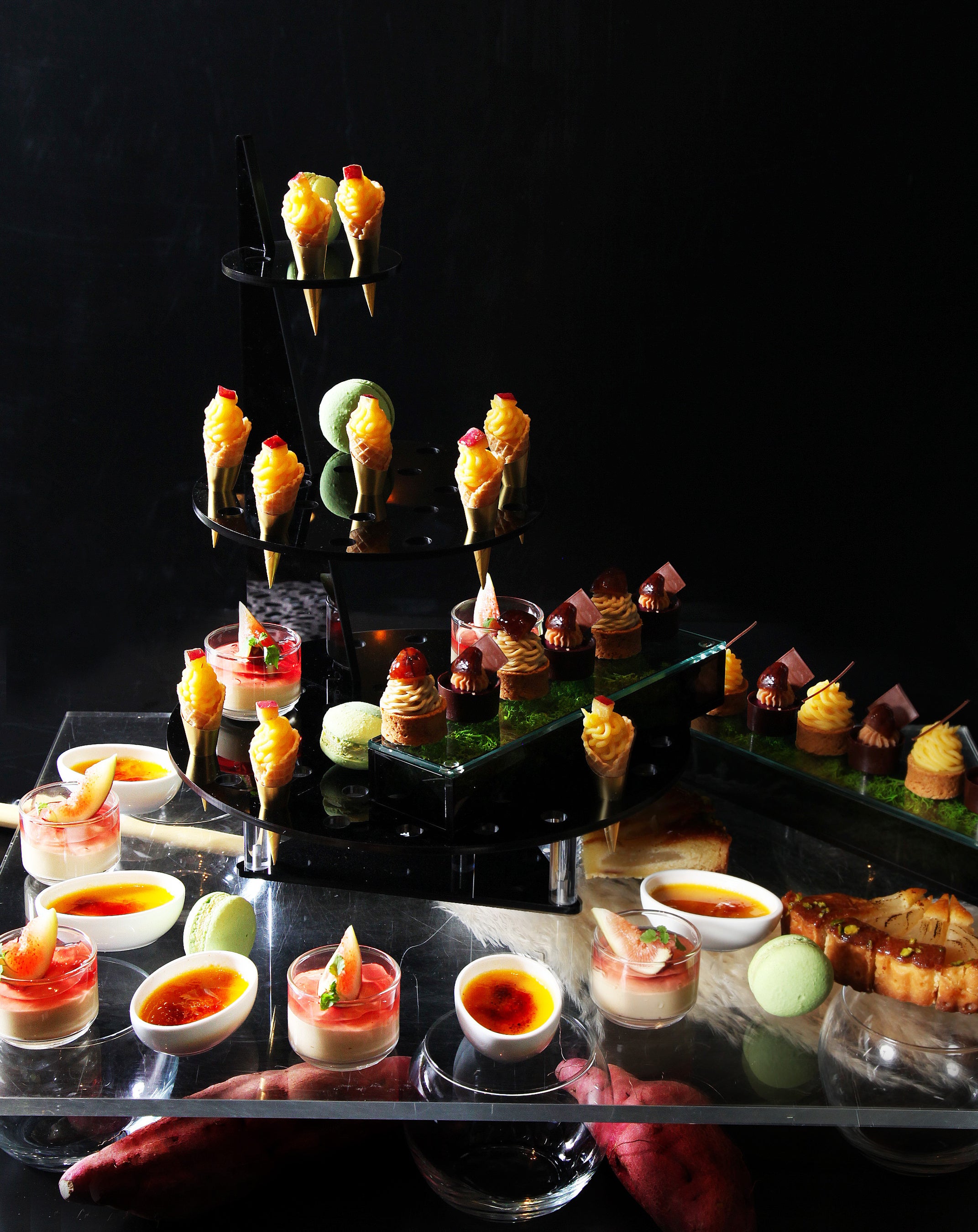 会場はホテル最上階にあるレストラン「フォーシーズン」。大きな窓から美しい海を眺めながら、ほっこり甘い秋の味覚をギュッと詰め込んだスイーツの数々をお愉しみください。