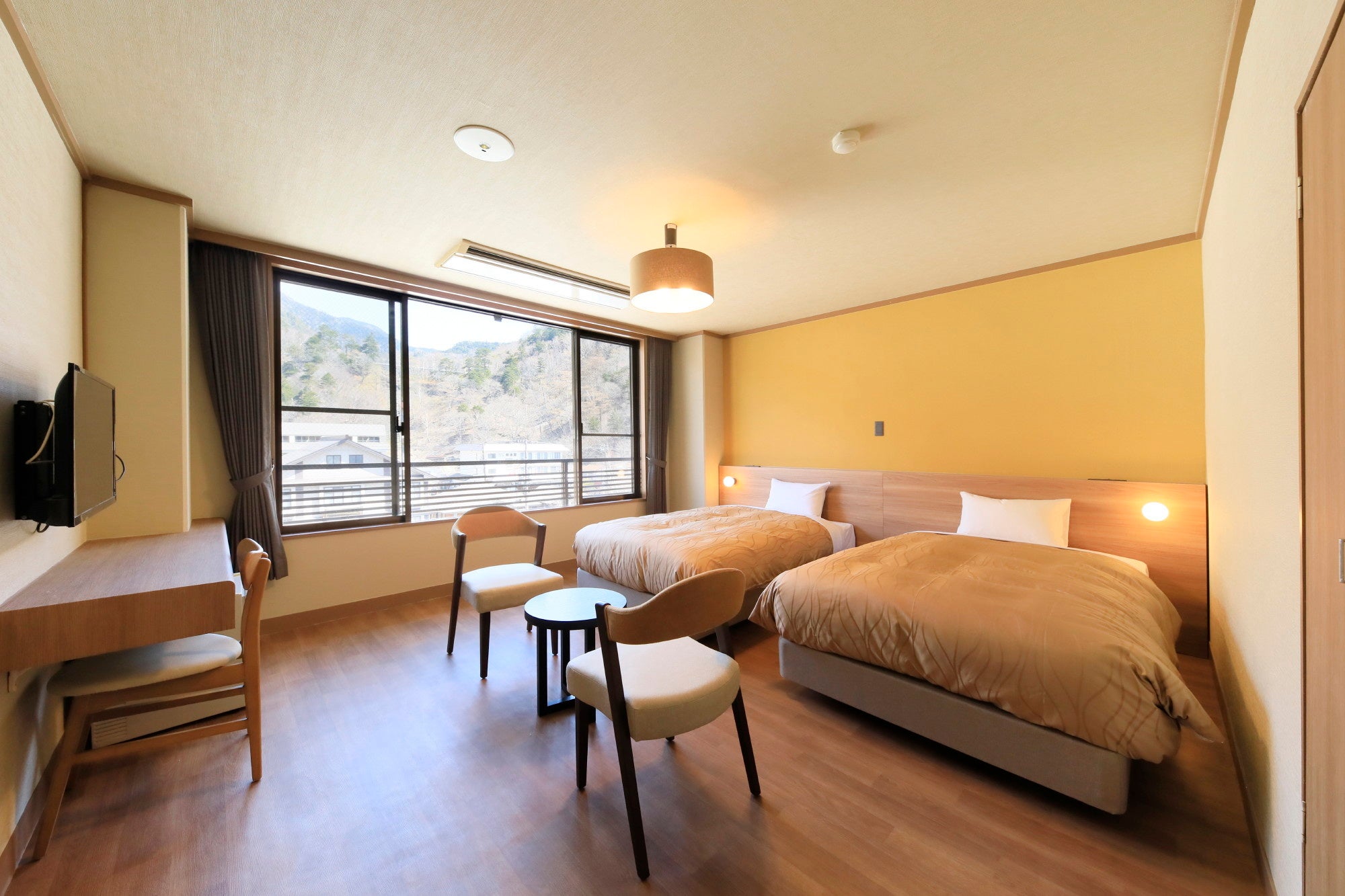 プラン名:【1日3室限定】愛犬と楽しむ3大特典付き!落ち着きのある洋室ツインベッド客室で奥日光の温泉旅を満喫♪<★豚しゃぶ鍋&ハーフビュッフェ>